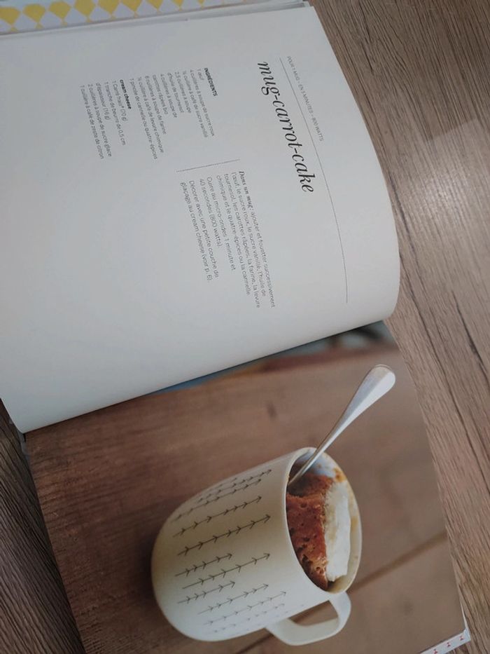 Livre de recettes "Mug cake" Plus de 30 recettes de Mug cake, prêts en 2min au micro-ondes Livre quasi neuf Valeur : 7.99€