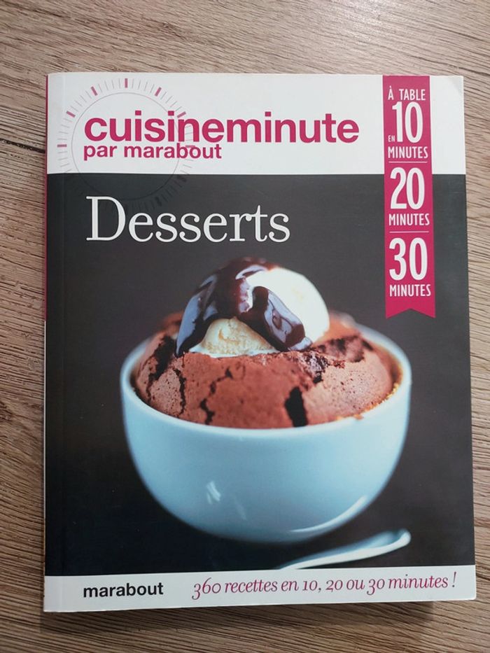Livre de recettes "Desserts" 360 recettes en 10, 20 ou 30 minutes ! Livre quasiment neuf Coin très légèrement abîmé dû au stockage sur l'étagère (cf photo) Valeur : 7.99€