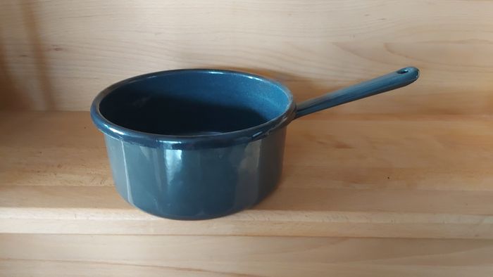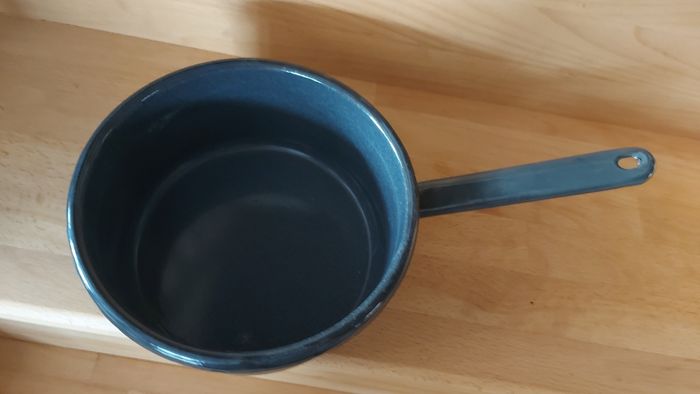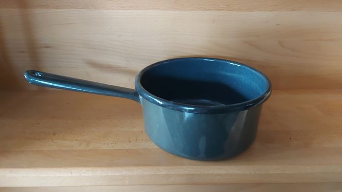 Poêlon émaillé, diamètre intérieur 16,5 x ht 8,5 x L 31 cm