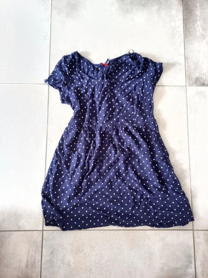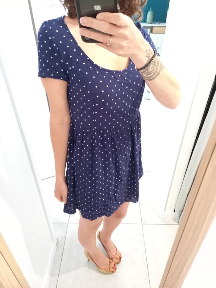 Robe à pois marine et blanche en gaz de coton - photo numéro 1