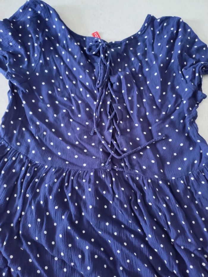 Robe à pois marine et blanche en gaz de coton - photo numéro 4