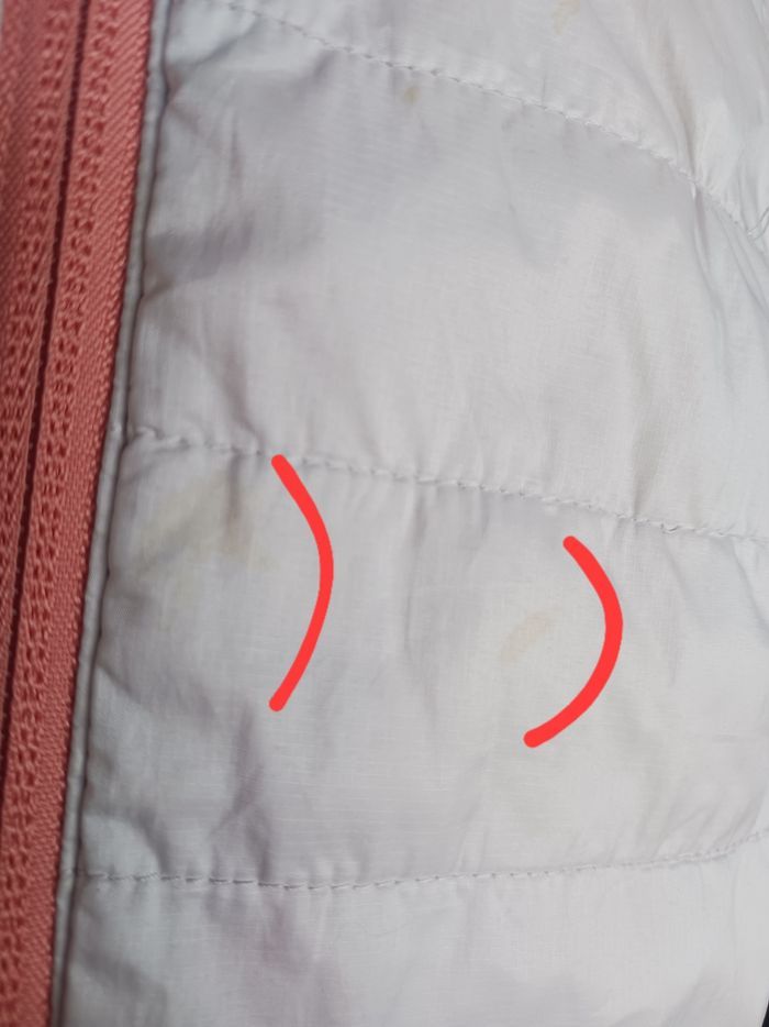 En bon état general, pas de trous mais 2 petites tâches devant. (Voir photo) Etiquette compo découpée