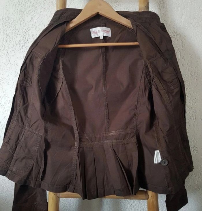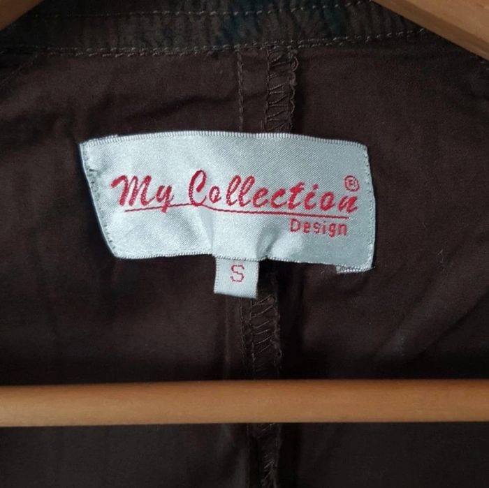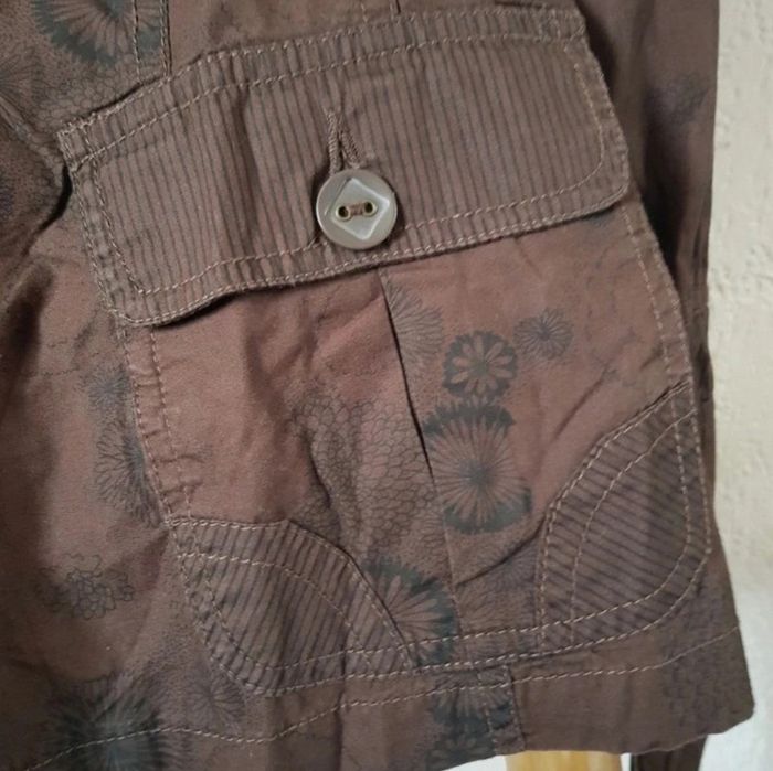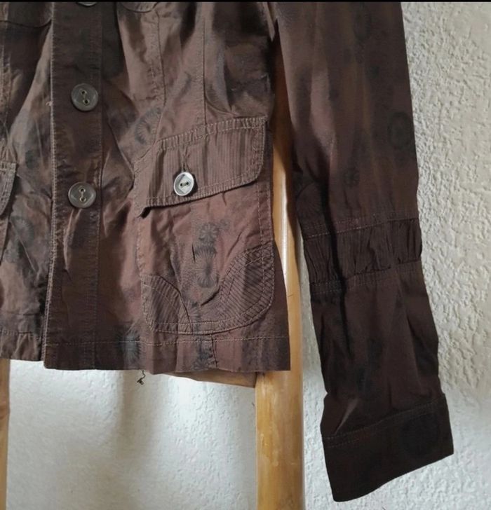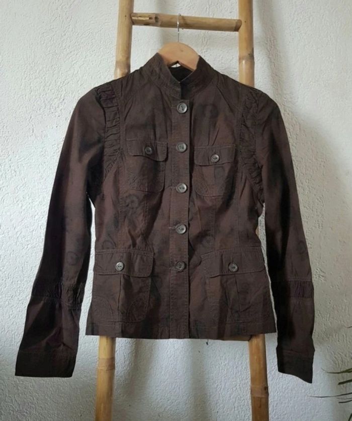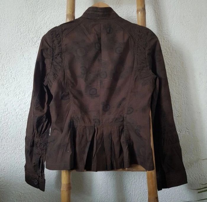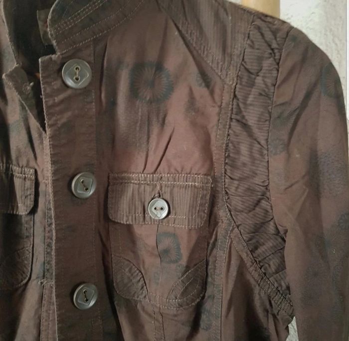 Chemise cintrée épaisse à manches longues, de nombreux détails viennent agrémenter et donner toute l'originalité de cette chemise ( voir photo) Couleur marron foncé intacte avec imprimé noir Sur les photos détaillées la couleur peut paraître passée ou faire comme des tâches mais il n'en ai rien 😊 Cette chemise est comme neuve sans aucun défaut #AdoFemme36_kiki13230