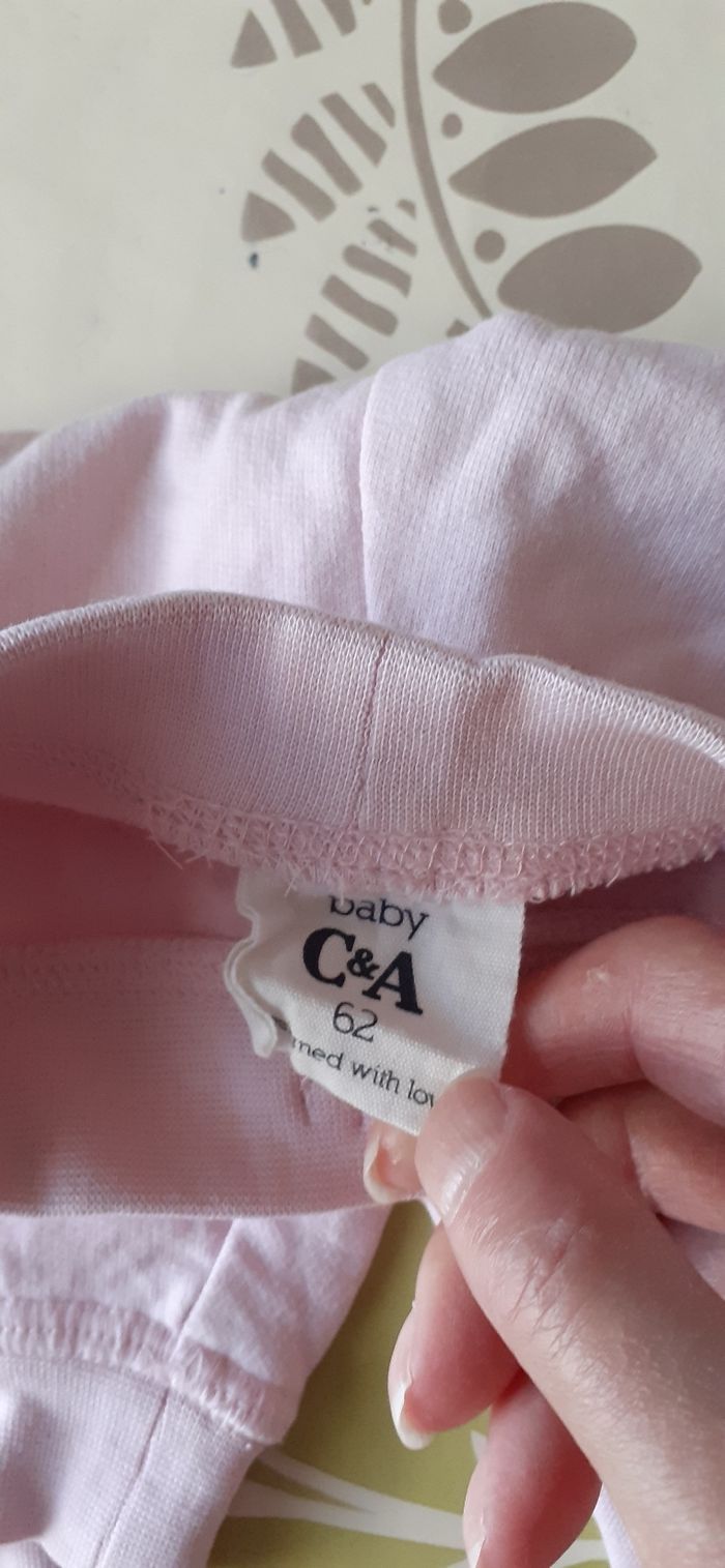 Pantalon rose avec un petit noeud 62cm Taille 3 mois Voir photo pour les matières