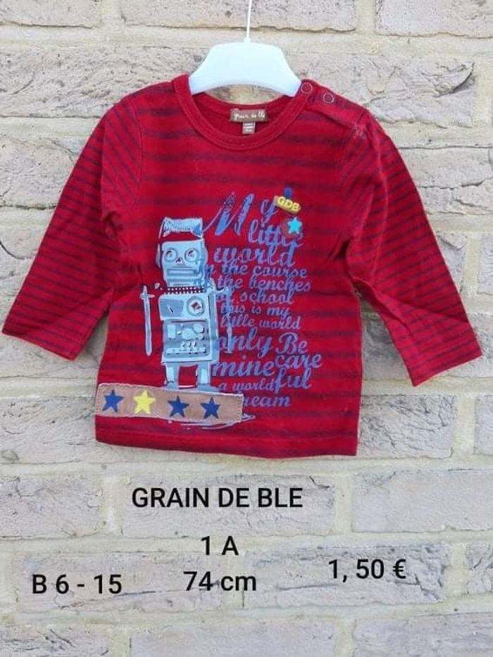 T shirt longues manches rouge GRAIN DE BLE Taille 1 an 74 cm Prix 1, 50 € ETAT SECONDE MAIN ✋ Mis mais encore en bon état, ni tâche, ni trou 😉,,