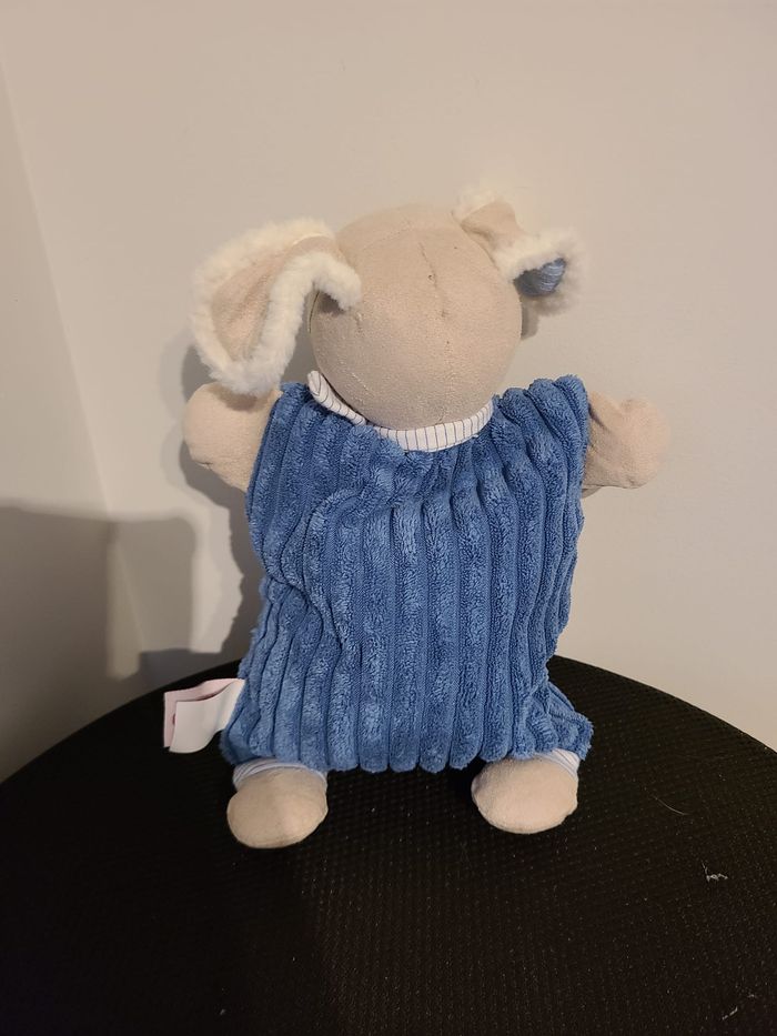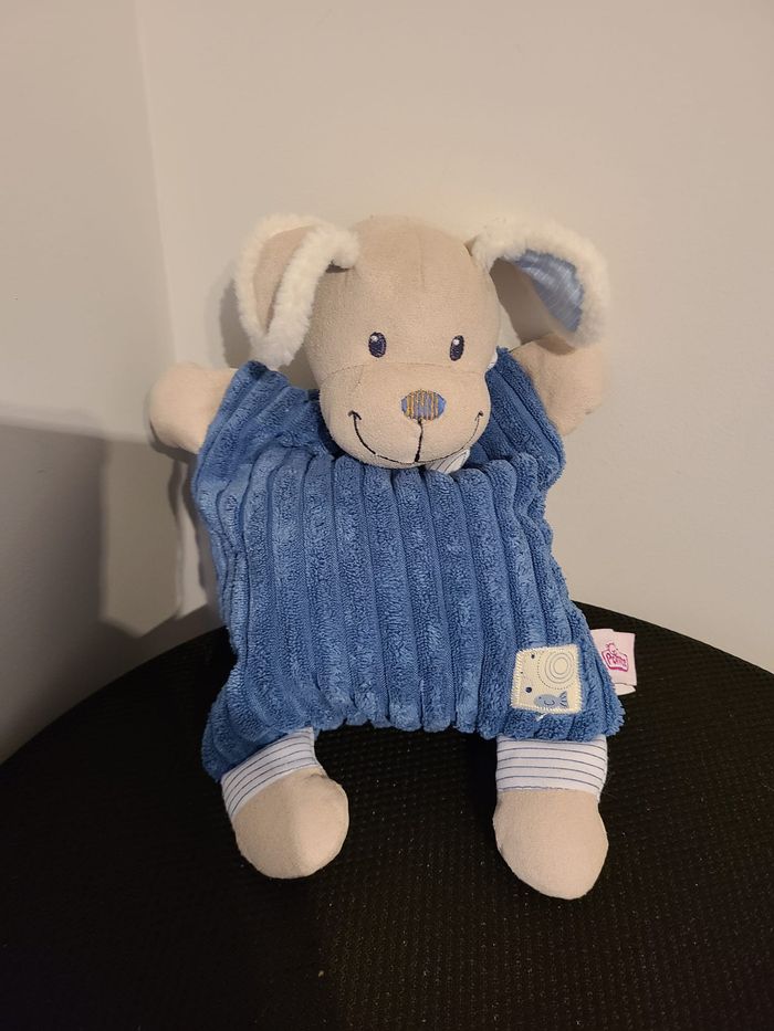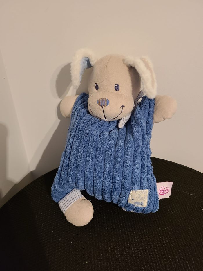 POMMETTE doudou semi plat chien bleu velours poisson 111