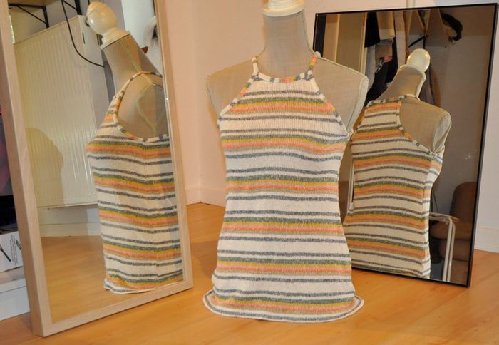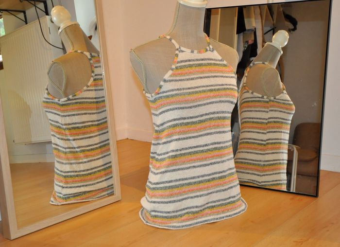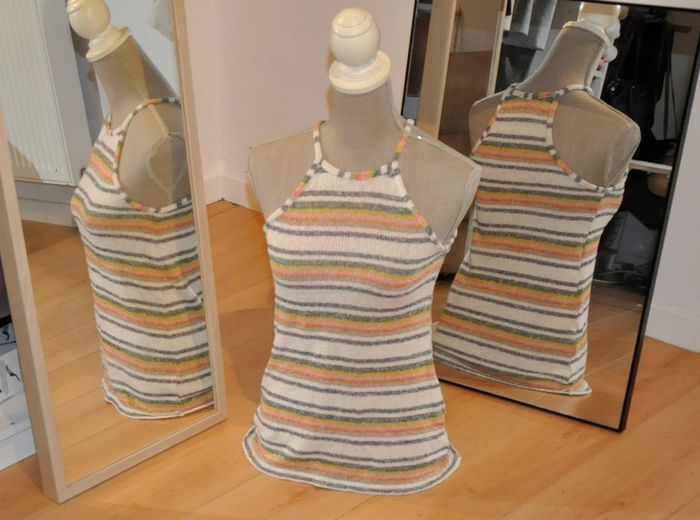 superbe top tons pastels, super agréable à porter quand il fait très chaud grâce à sa maille aérée 63% coton 37% polyester, col rond fines bretelles et dos nageur, 63cm de long #ophhaeXS #ophhae34