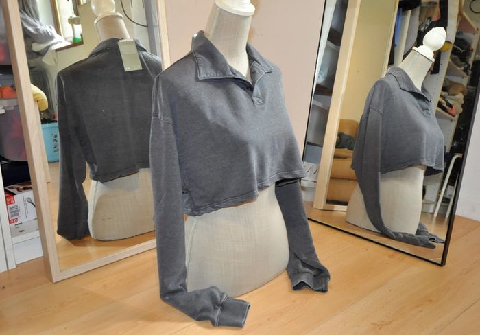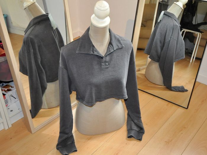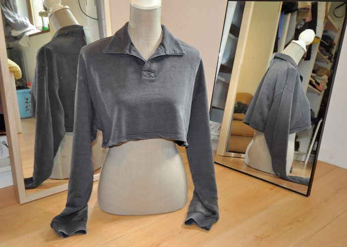 Haut crop top col polo et manches longues , matière sweat-shirt été 58% coton 42% polyester largeur sous aisselles 55cm #ophhaeS #ophhae36 #crop top#