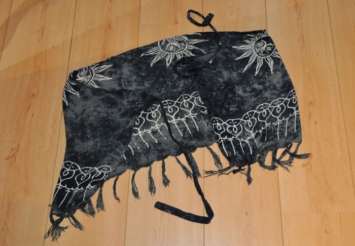 paréo à porter noué à la taille sur maillot ou bikini en vacances, acheté sur place dans un club le tissu est un peu lâche aux coutures voir photos ' et 5 mais ne gêne en rien