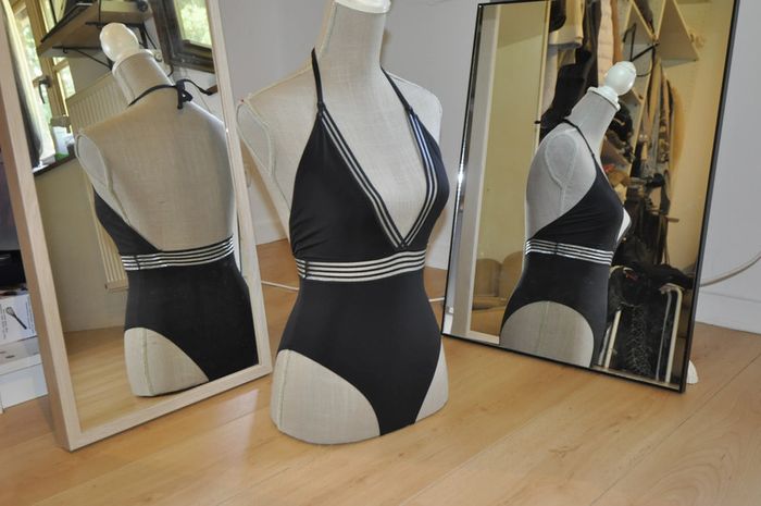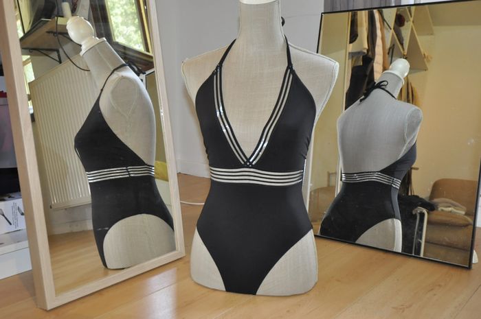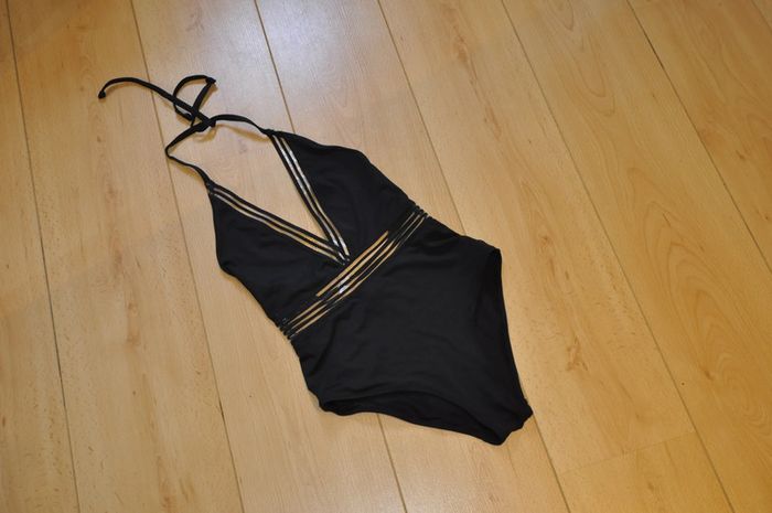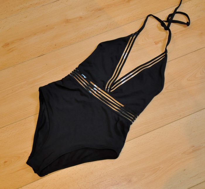 superbe maillot noir avec bande transparente lignée à la taille et sur les bords du décolleté, en parfait état #ophhaeXS #ophhae34