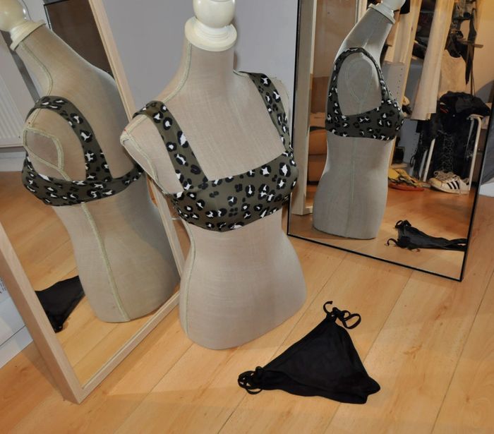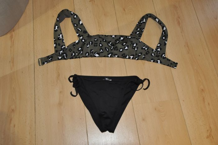Bikini haut kaki leopard bas noir t.34/36 tb état - photo numéro 4