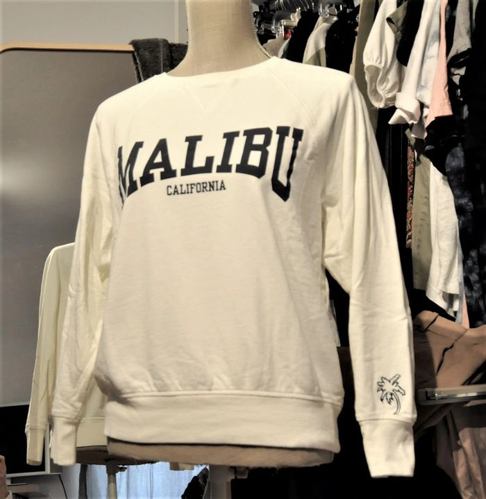 sweat shirt avec col rond, blanc cassé ivoire avec inscription en noir sur la poitrine et bas de la manche gauche. 100% coton. #ophhaeS