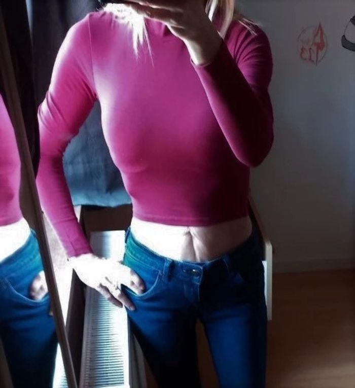 H&M top court stretch bordeaux XS Neuf avec étiquette - photo numéro 4