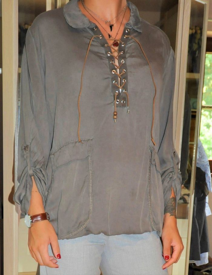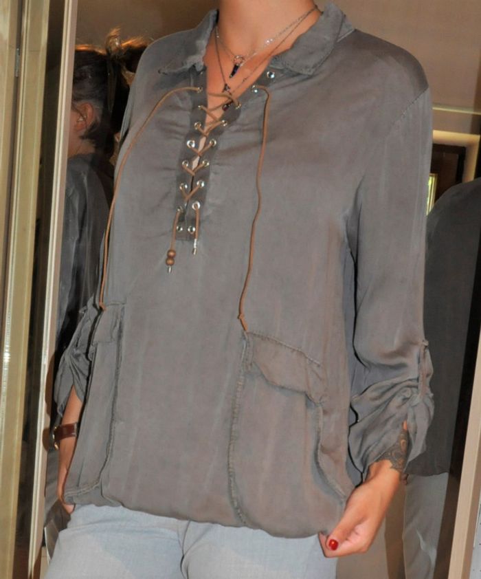 Blouse kaki col polo avec laçage t.M - photo numéro 1