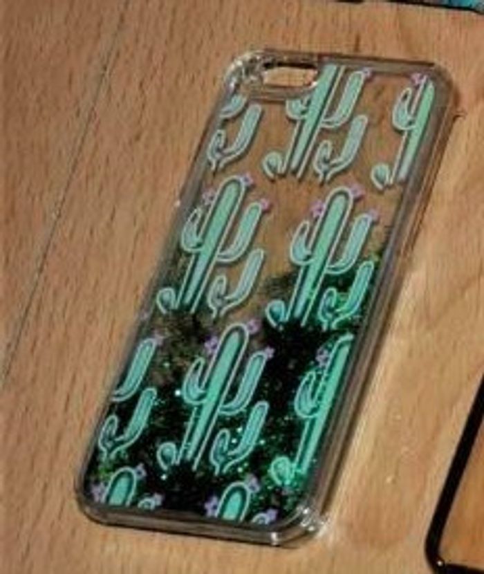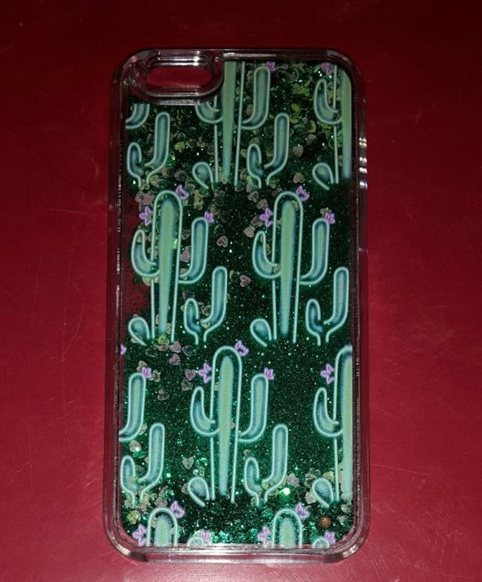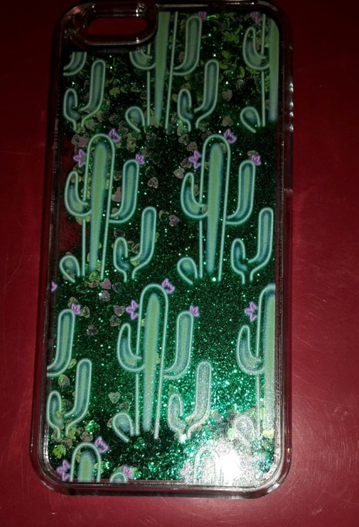 Coque rigide "cactus" avec paillettes vert brillant mobiles donc qui bougent quand on déplace le téléphone A vendre cause changement de téléphone