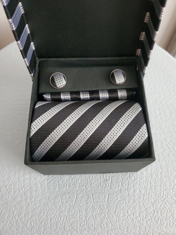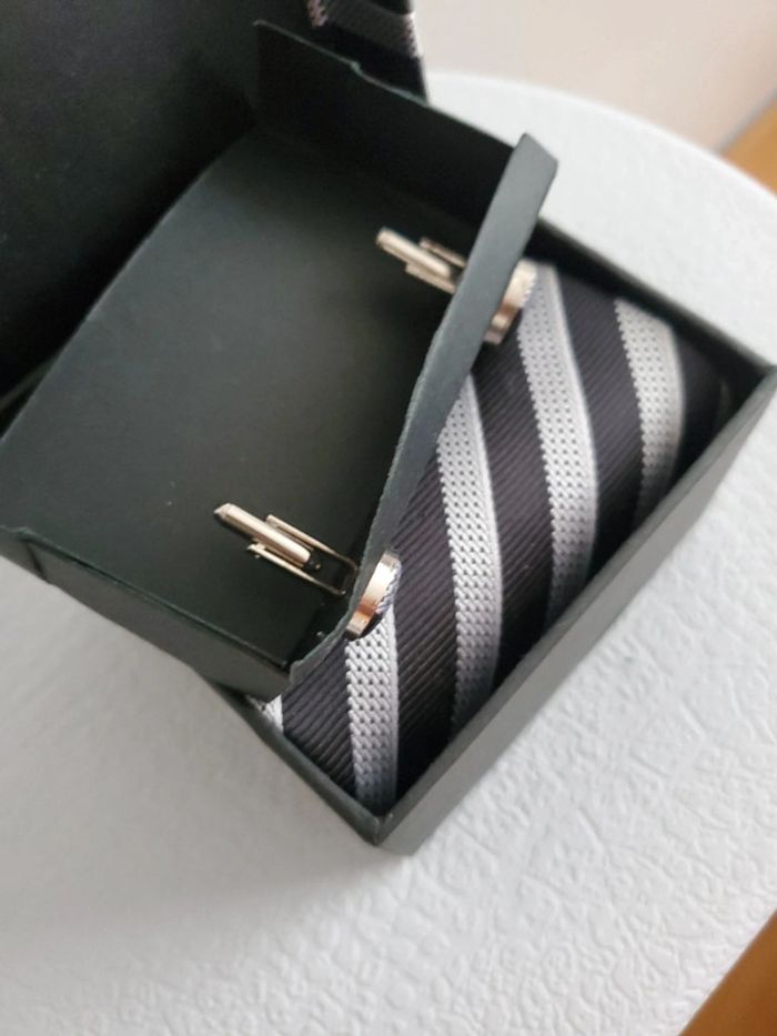 Cravate avec bouton de manchette dans sa boîte d'origine neuf - photo numéro 1