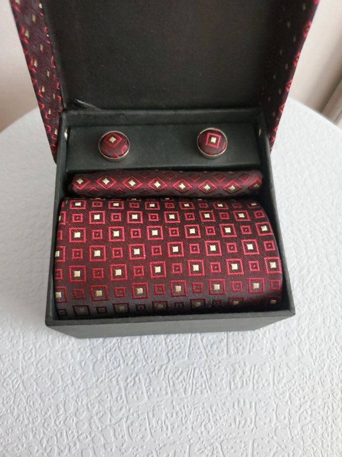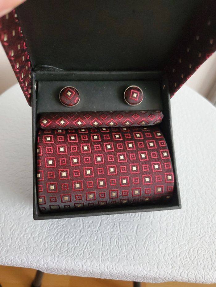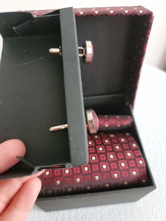 Neuf boîte avec bouton de manchette et la cravate couleur rose bordeau Beau 🎁 à offrir