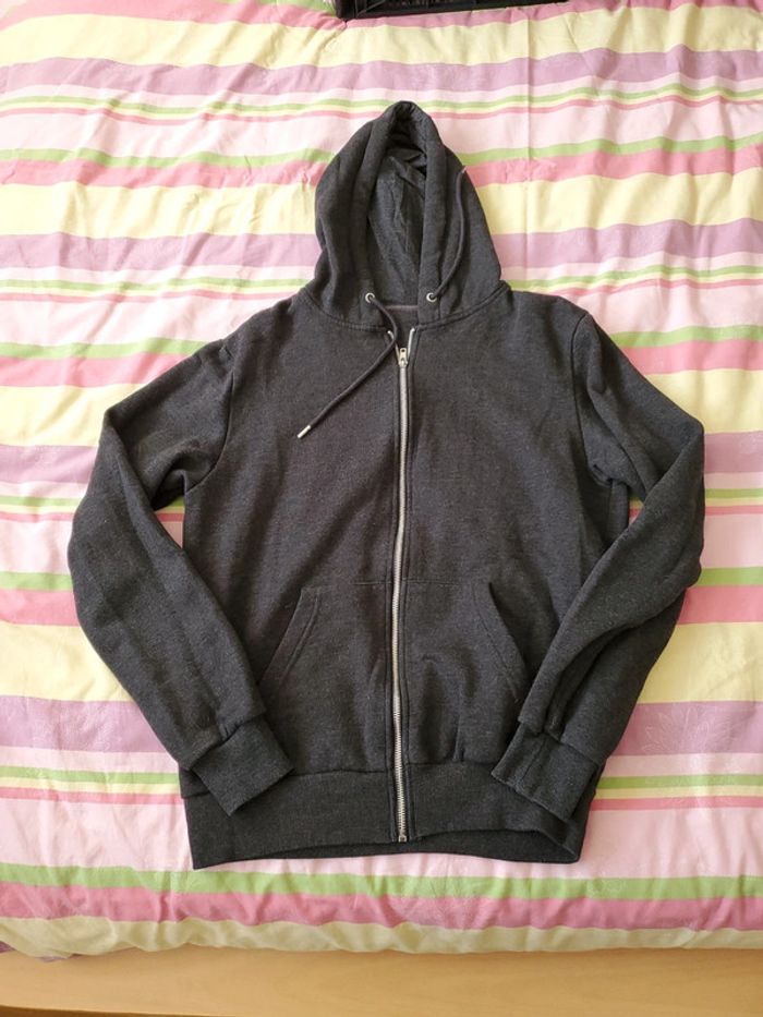 Sweat zip à capuche gris foncé noir TS - photo numéro 1