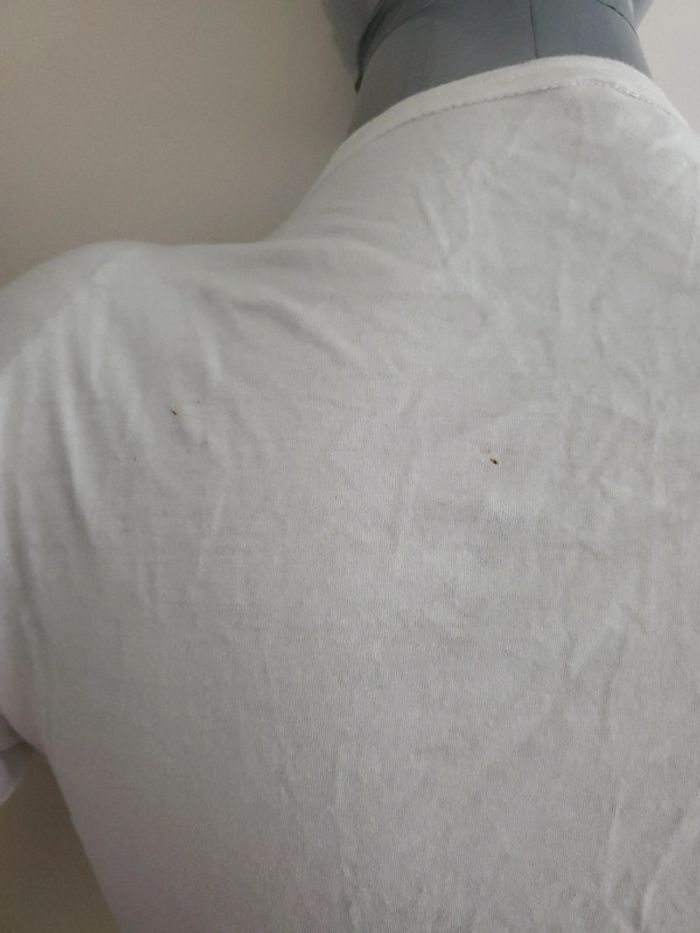 Beaucoup porter avec un débardeur en dessous 2 légère tâche voir la photo Taille M petit plutôt un TS