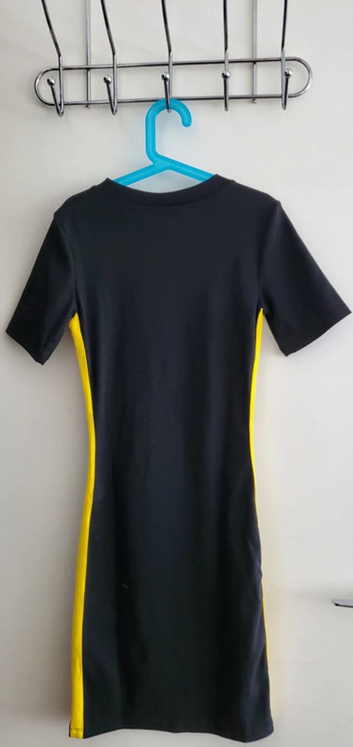 Robe noir longue avec des bande de couleur blanc et jaune de chaque cotés - photo numéro 3