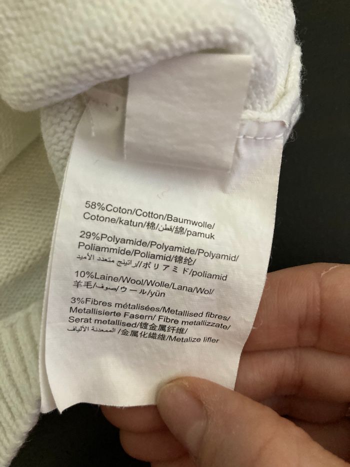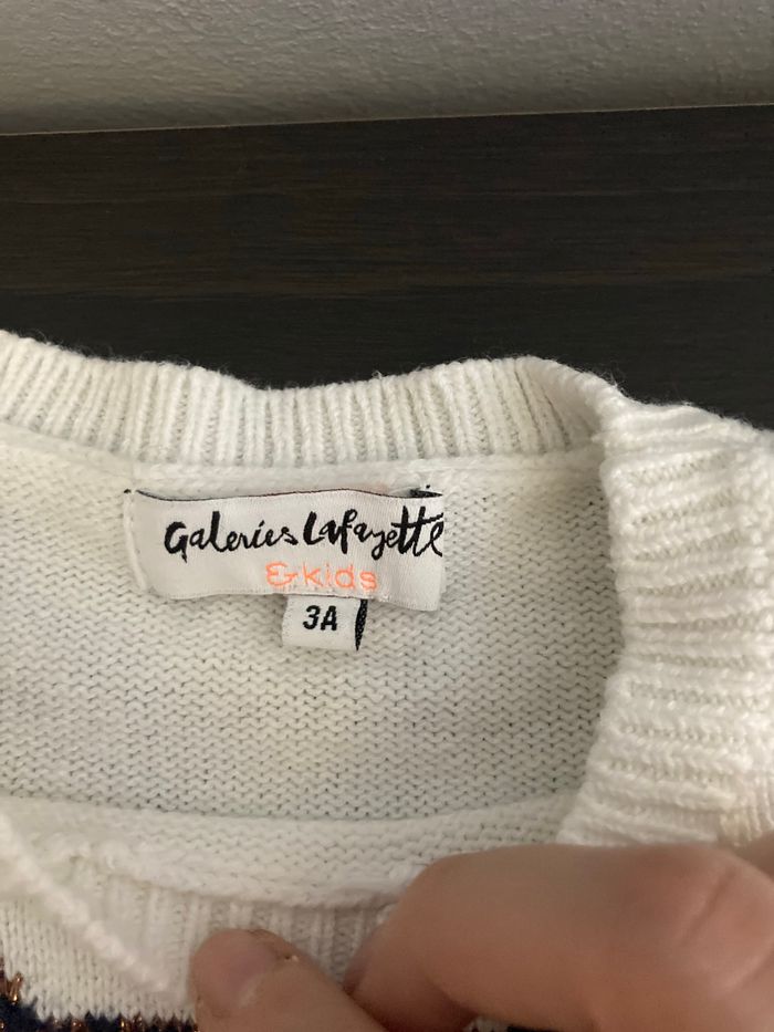pull fille chaud avec un mélange de laine coton et polyamide. Acheté aux galeries Lafayette en taille 3ans Couleur écru blanc