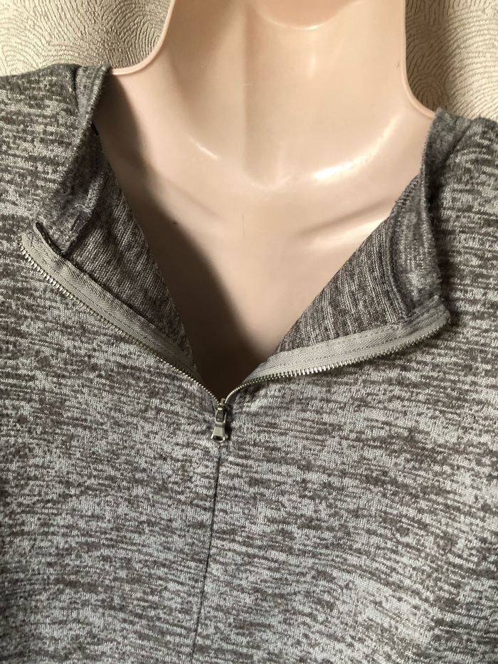 Pull léger gris chiné Manches 3/4 Liquette dans le bas, plus long derrière que devant 83% polyester 15% viscose 2% élasthanne Taille 2XS ou 32/34 Primark Carrure 55 cm Aisselle à aisselle 52 cm Longueur dessous de manche 23,5 cm Longueur devant 59 cm Longueur dos 62 cm