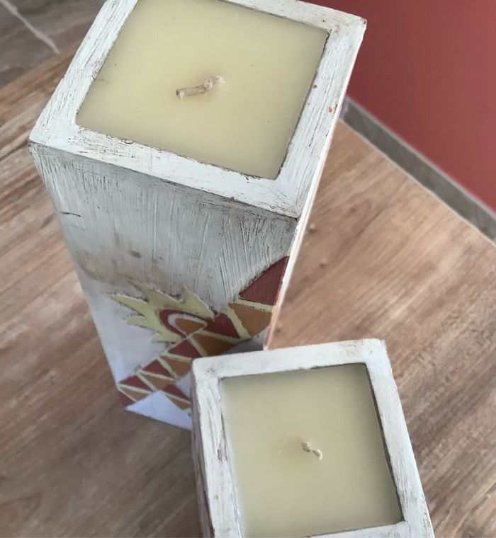 Lot de 2 bougies socle imitation bois, style Ethnique taille 20 cm et 30 cm
