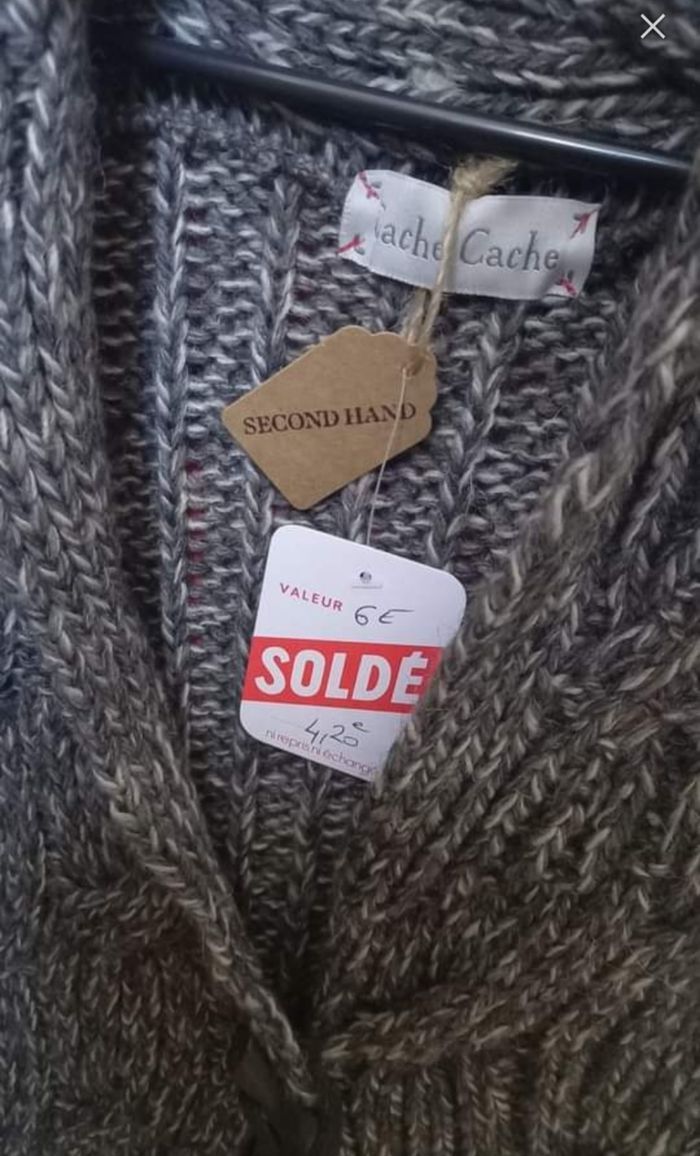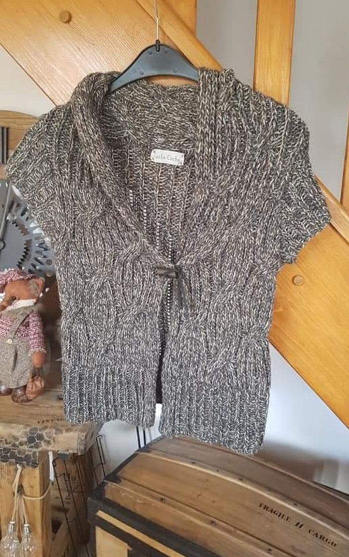 💥PROMOTION 💥 ........ -30% ........ 🏷4€20 gilet chic sans manche Marron beige gris Fermeture un bouton 50% acrylique/ 30% laine / 10% alpaga/ 10% viscose Taille 36 / S Cache - cache N°730 6€ #kelly_femmeT36 #kelly_soldes