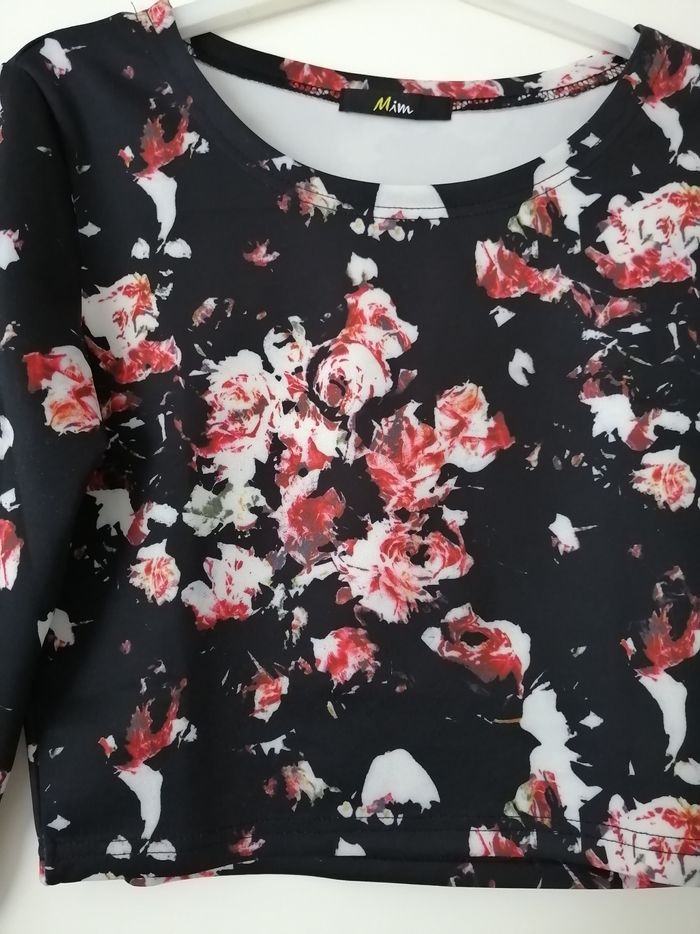 Sweat fin court noir fleuri Mim taille XS - photo numéro 1