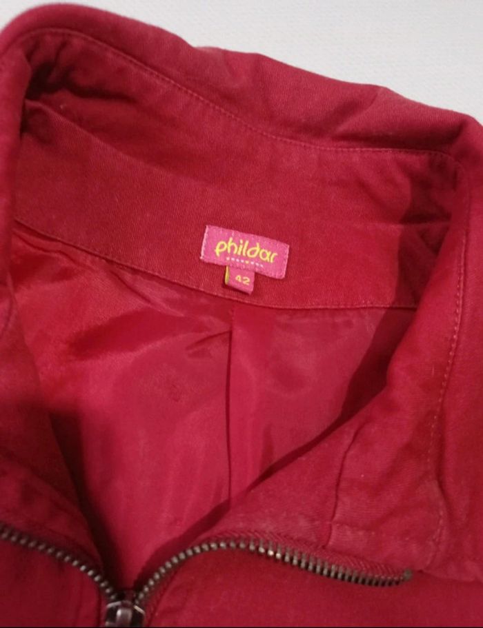 Blouson coton rouge Doublure polyester Plusieurs poches Poigné pression Phildar étiquette taille 42 #sev40000femme42