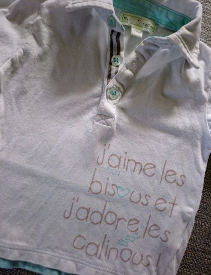 Polo 100 % coton "J'aime les bisous et j'adore les calinous" Taille 12 mois