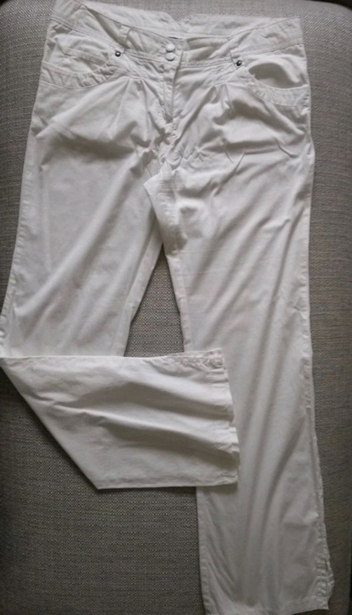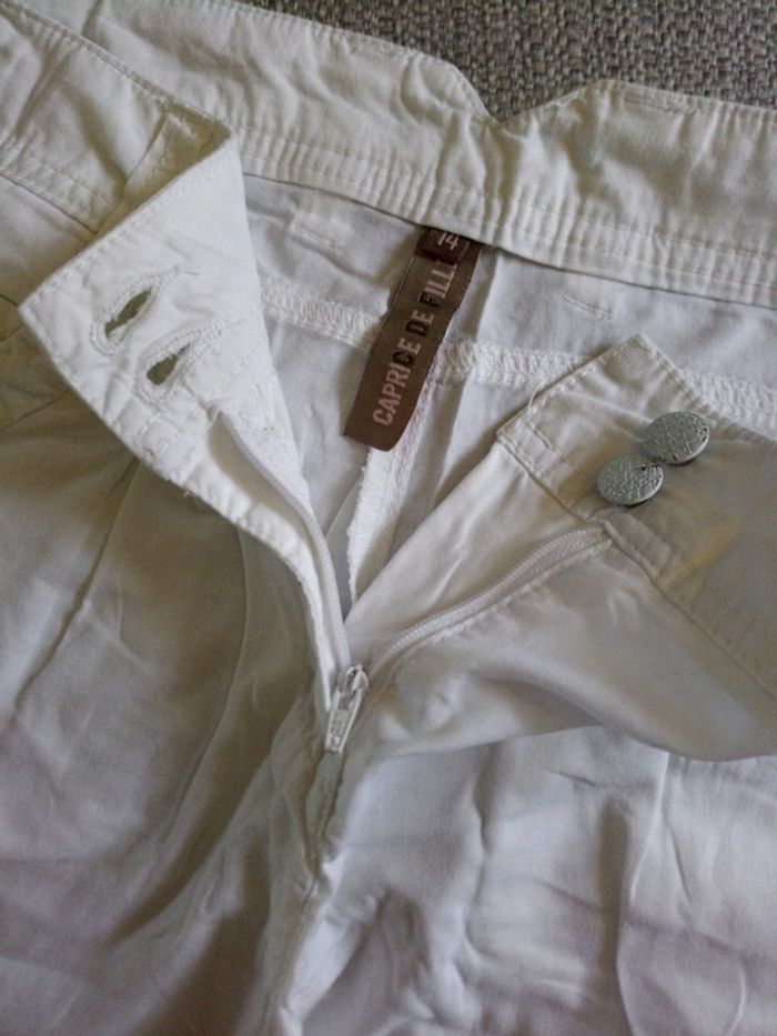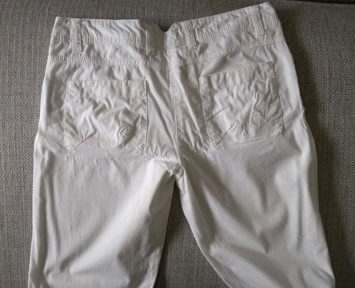 Pantalon coton blanc Fermeture braguette et boutons Passants pour ceinture 5 poches Étiquette taille 14 ans