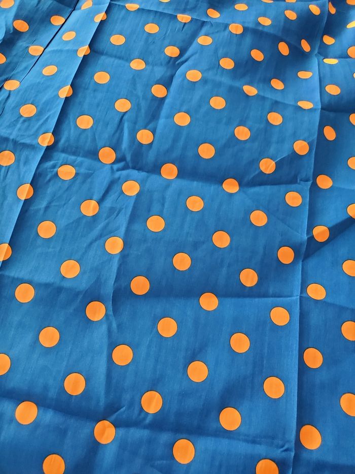 Tissus Bleu à pois orange 200×150
