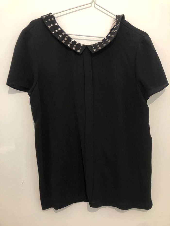 Top noir Naf Naf taille L avec détails au col - photo numéro 1