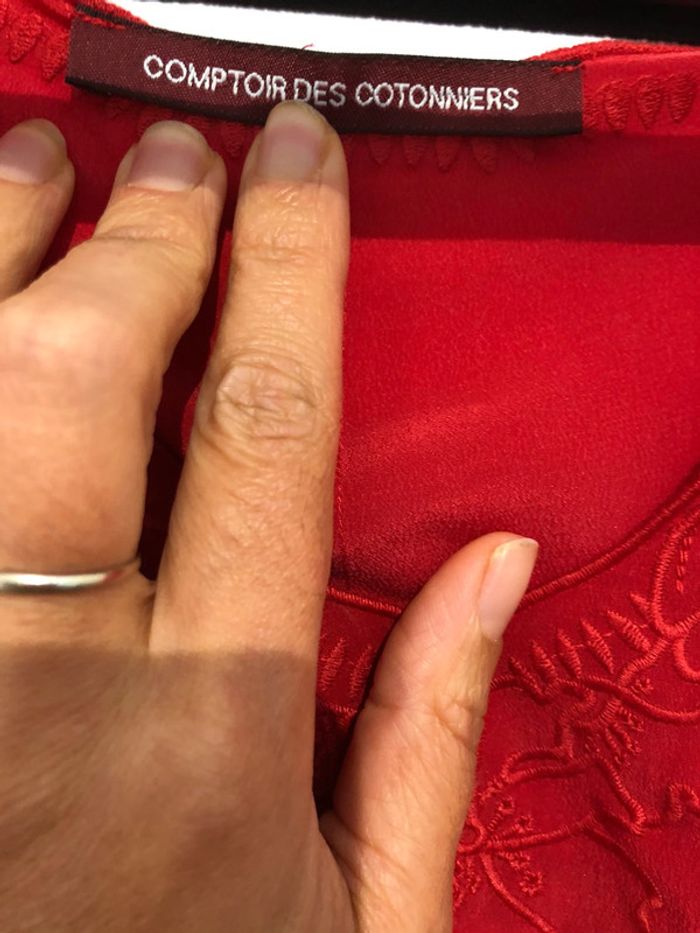 Très jolie robe Comptoir des cotonniers avec son fond de robe assorti Magnifique broderie au col Jamais portée 🫣 ⚠️il y a un reflet sur la photo ce n’est pas une tâche ⚠️ La robe est en 100% soie et la doublure en viscose : un article de belle qualité 😊 Longueur environ 91 cm a l’arrière, 84 cm a l’avant Largeur épaule à épaule environ 49 cm ⚠️pas d’envoi colissimo⚠️ #soie #viscose #robe #roberouge #rouge #comptoirdescotonniers #robe40 #adrymaillrobe #adrymaill40