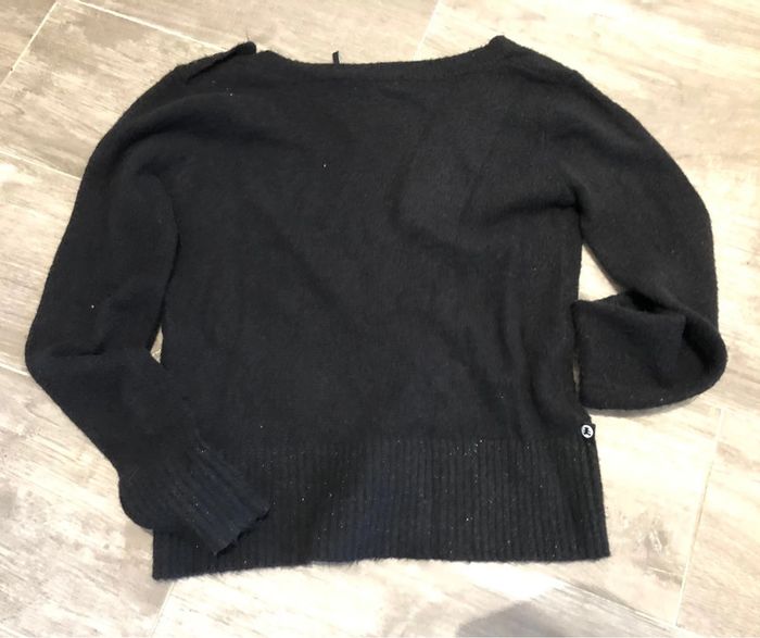 Très bon état car peu porté Bande legerement irisée en bas du pull et à chaque manche 🚨pas d’ envoi colissimo🚨 #lulucastagnette #pullnoir #colV #lulu38 #pulllaine #adrymaillpull #adrymaill38