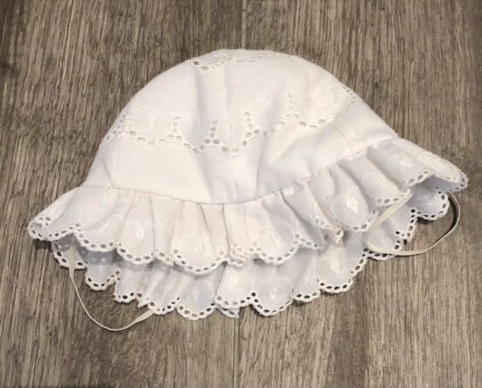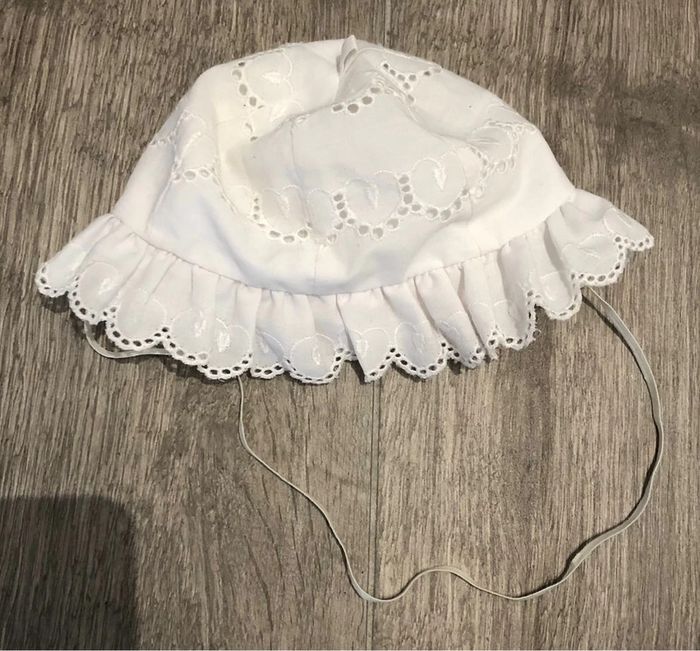 Joli chapeau bébé vintage blanc 39 cm avec broderie - photo numéro 1