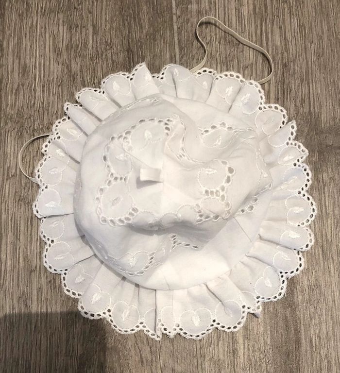 Joli chapeau bébé vintage blanc 39 cm avec broderie - photo numéro 2