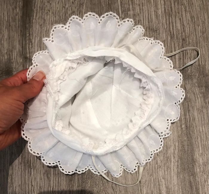 Joli chapeau bébé vintage blanc 39 cm avec broderie - photo numéro 4