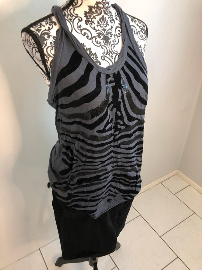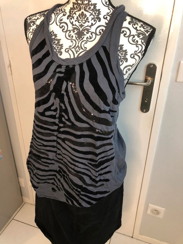 Débardeur gris zébré à sequins noirs Mango taille L - photo numéro 2