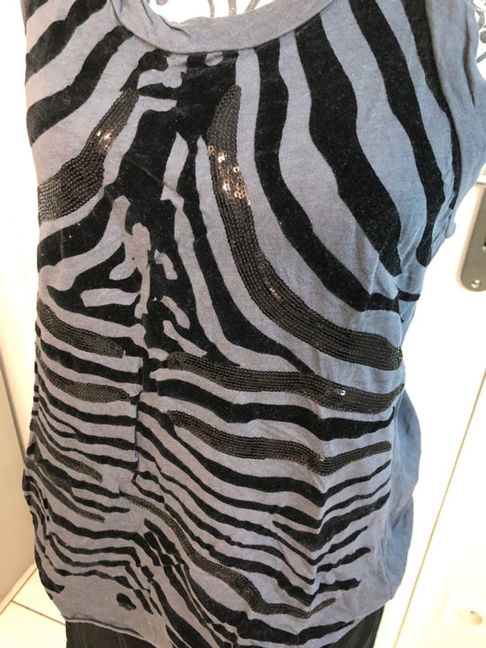 Débardeur gris zébré à sequins noirs Mango taille L - photo numéro 7