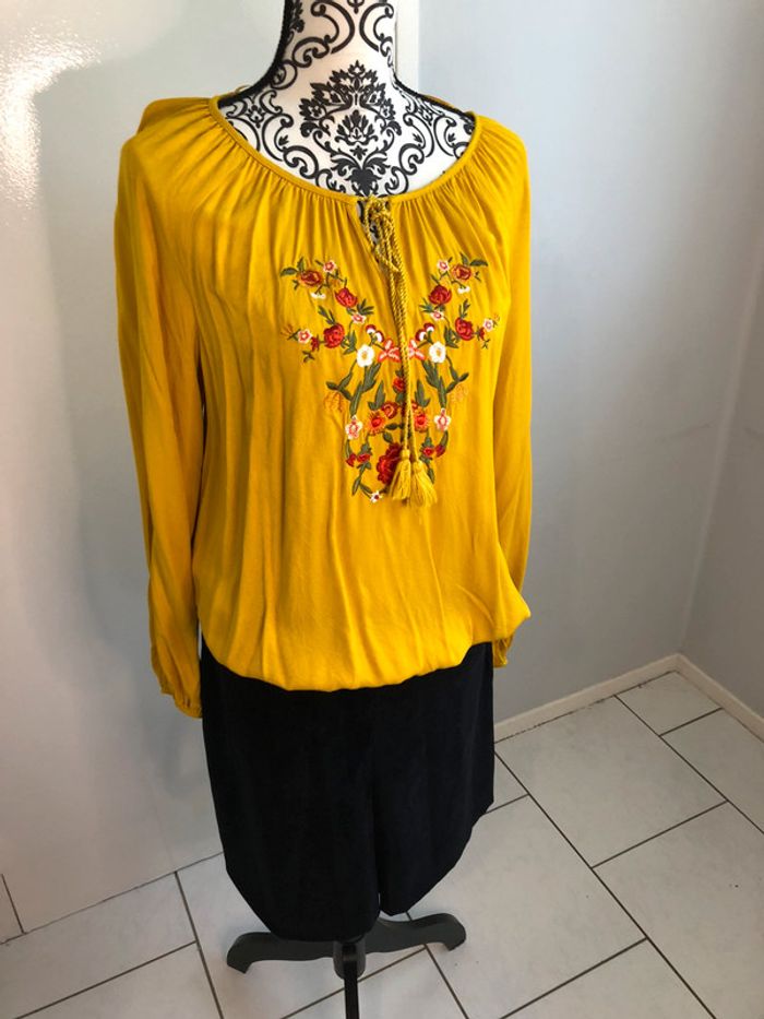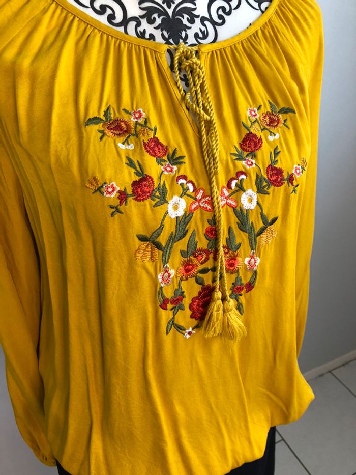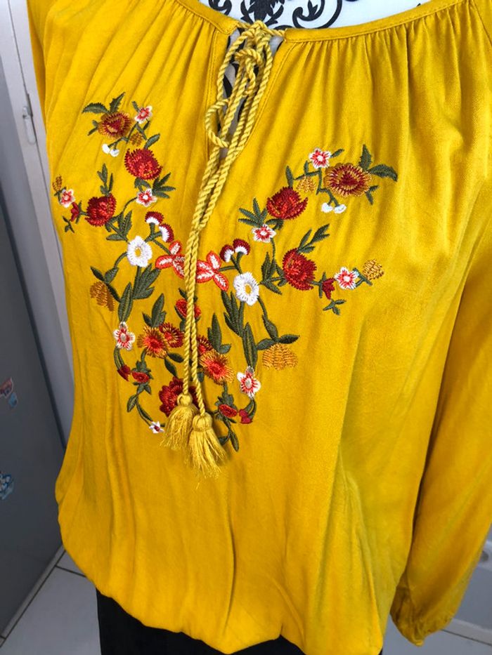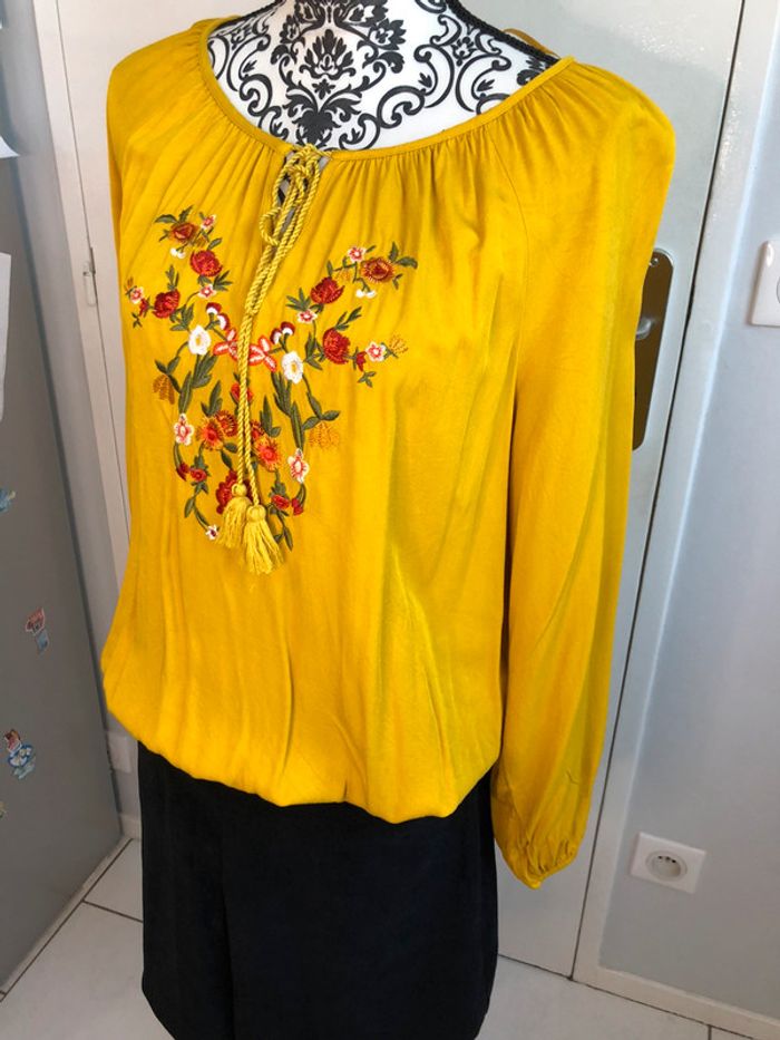 très jolie avec fleurs brodées porté une fois 🚨envoi de préférence par mondial relay, relais colis ou chronopost 🚨 #boheme #blouse #jaune #camaieu