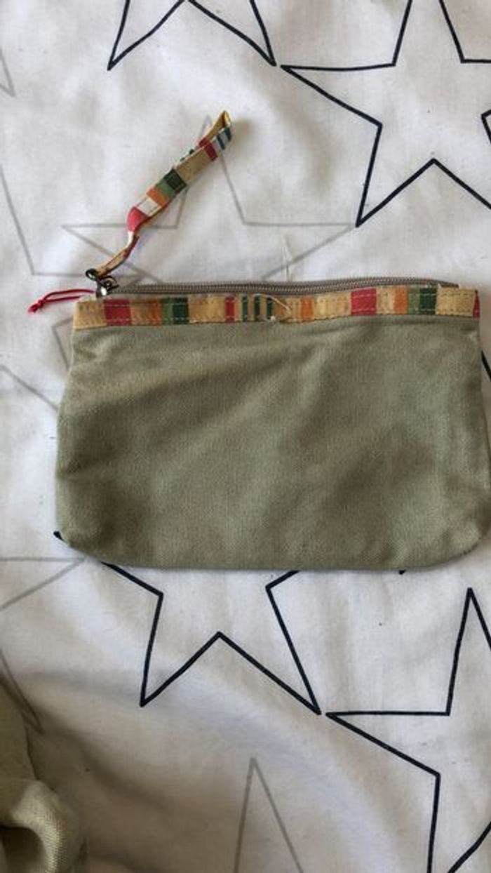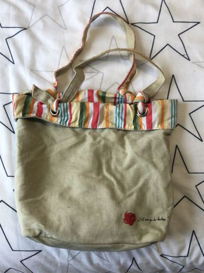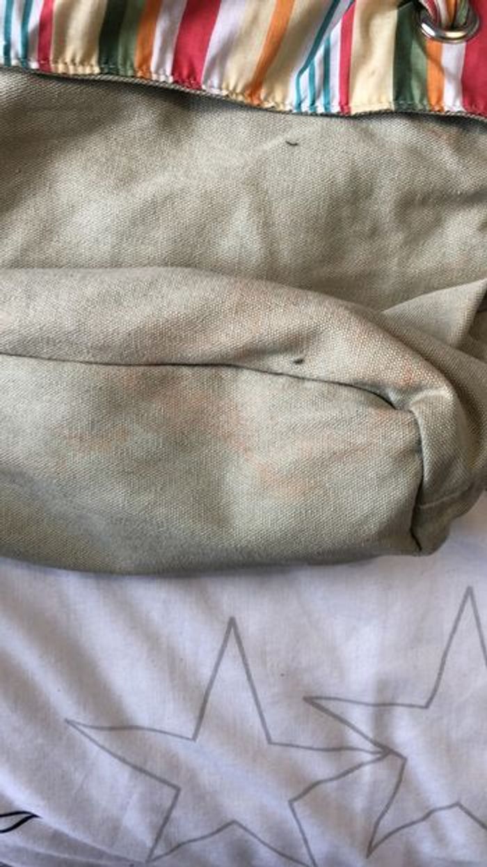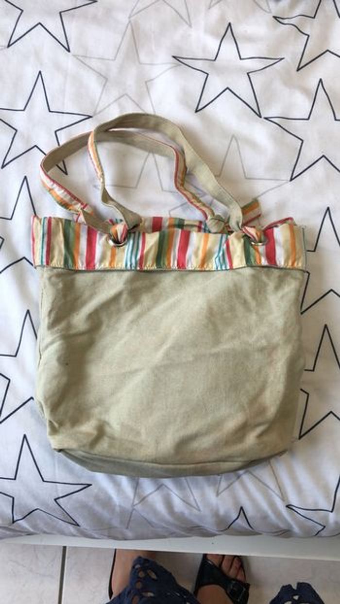 joli cabas vert avec sa pochette assortie état correct car fond taché cf dernière photo #cabas #cabasvert #vert #vertdeau #anis