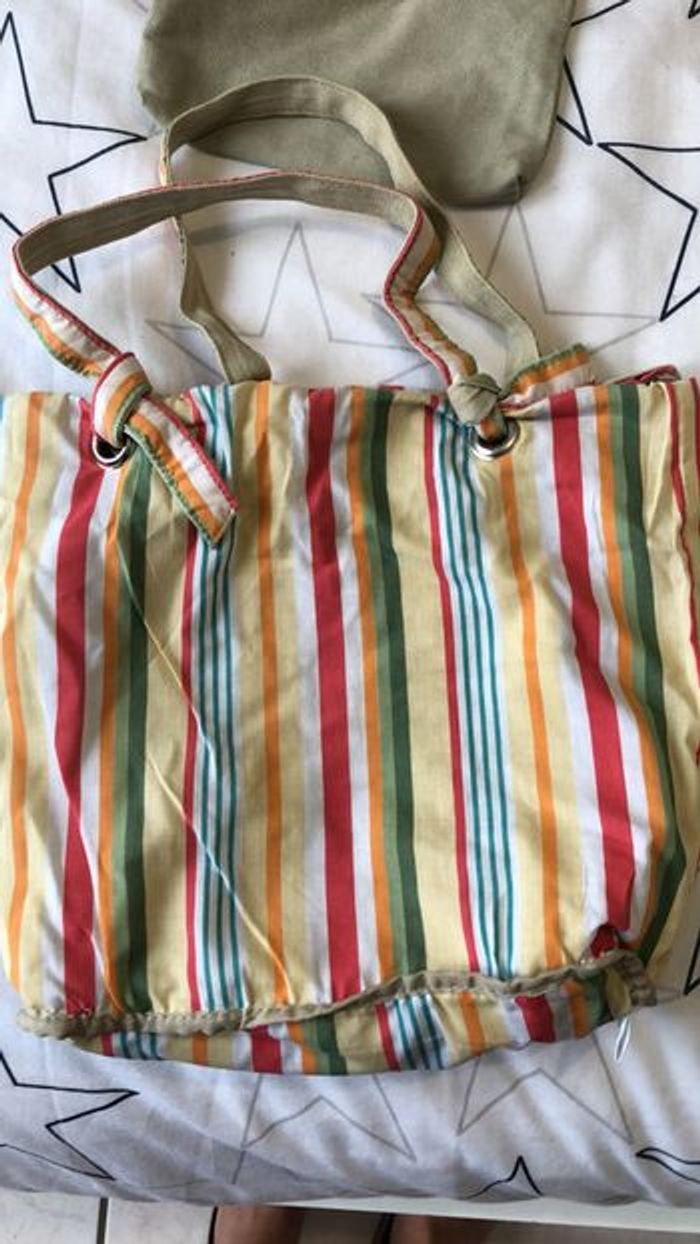Cabas vert et raye réversible avec pochette - photo numéro 6