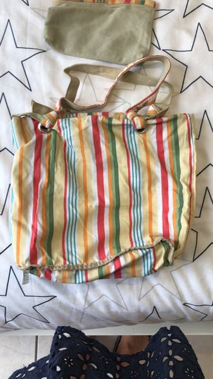 Cabas vert et raye réversible avec pochette