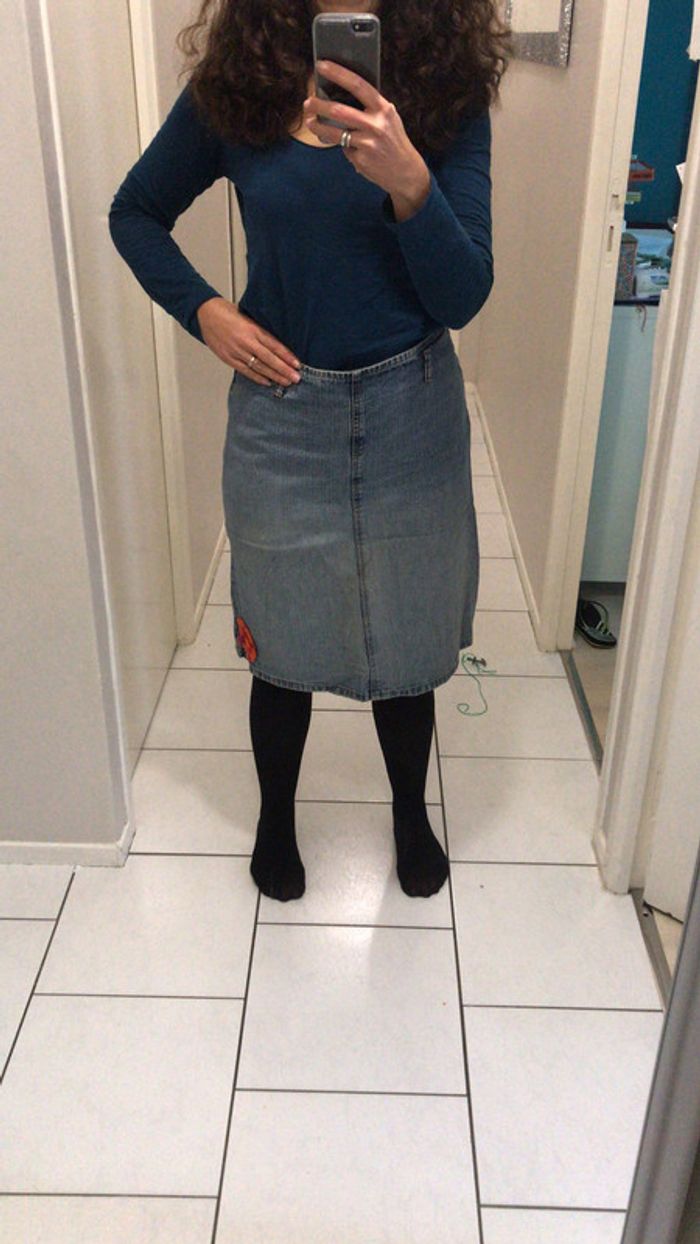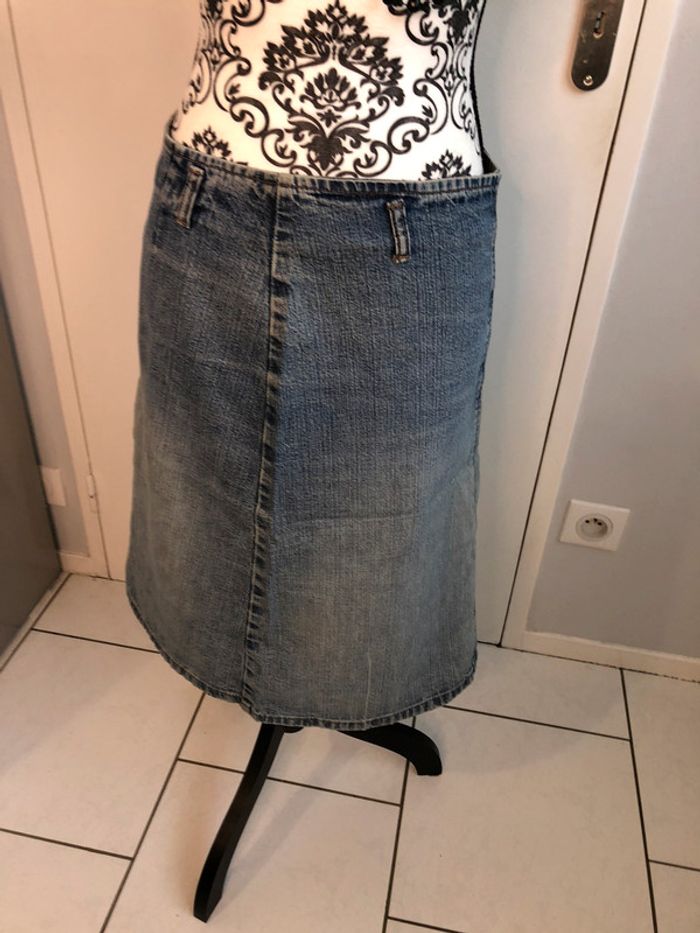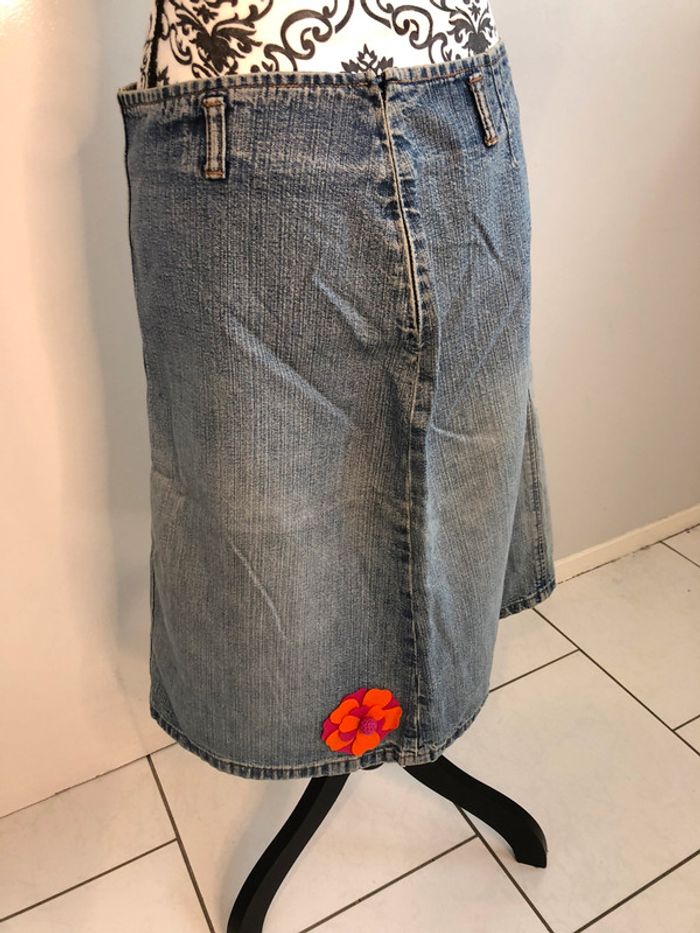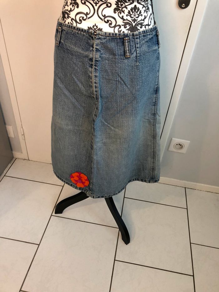 Jupe jeans Lulu Castagnette avec fleur rose et orange taille 40 - photo numéro 8