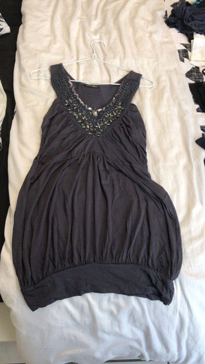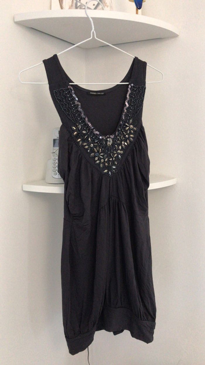 Débardeur gris foncé col V à sequins et perles 3 suisses - photo numéro 1