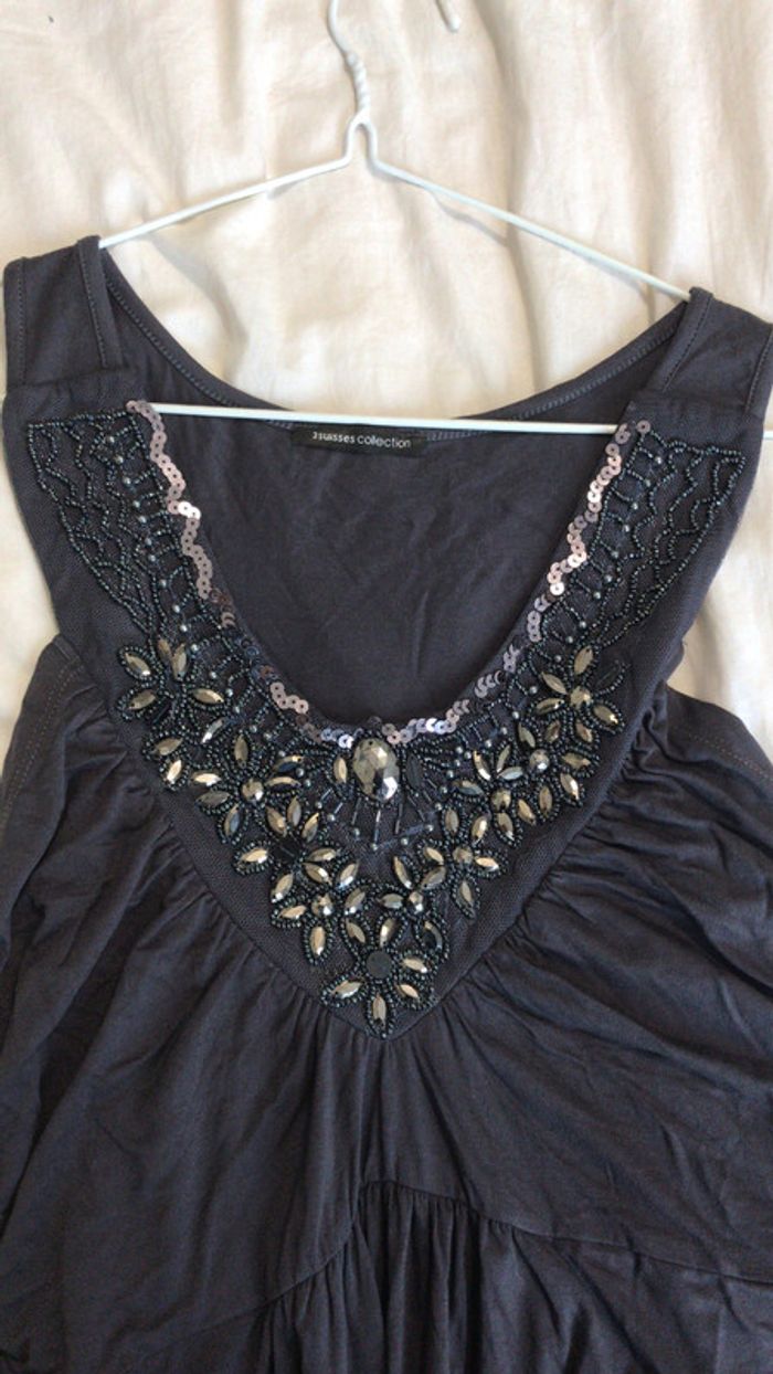 Débardeur gris foncé col V à sequins et perles 3 suisses - photo numéro 7