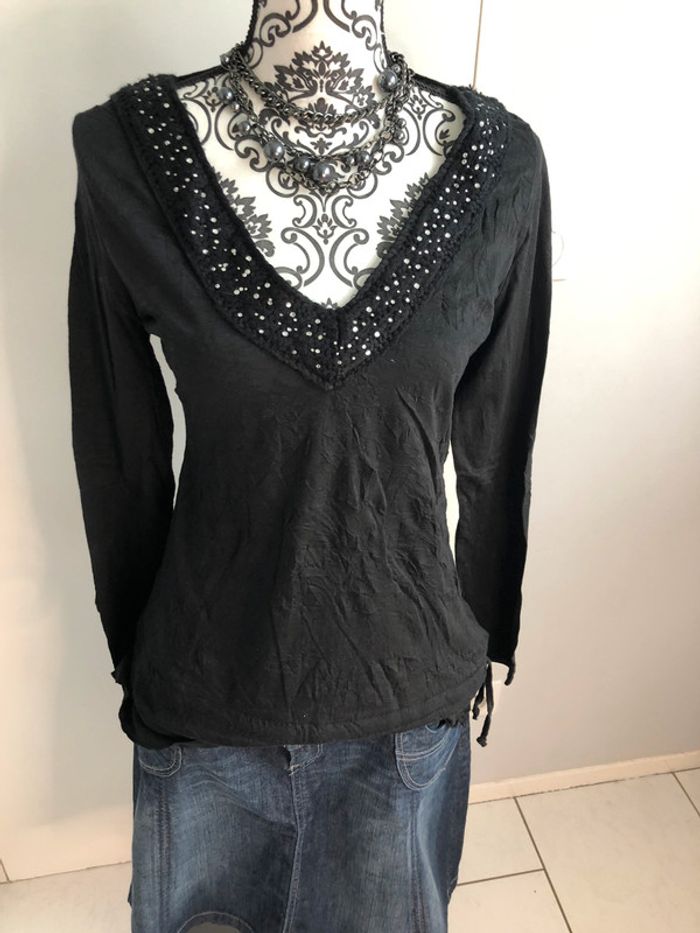 Tunique blouse noire à strass Etam taille 38 - photo numéro 2