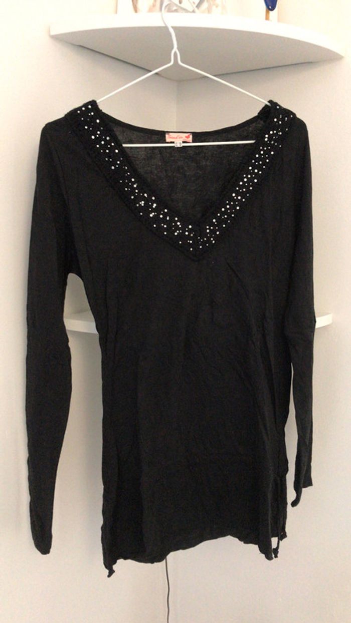 Tunique blouse noire à strass Etam taille 38 - photo numéro 1